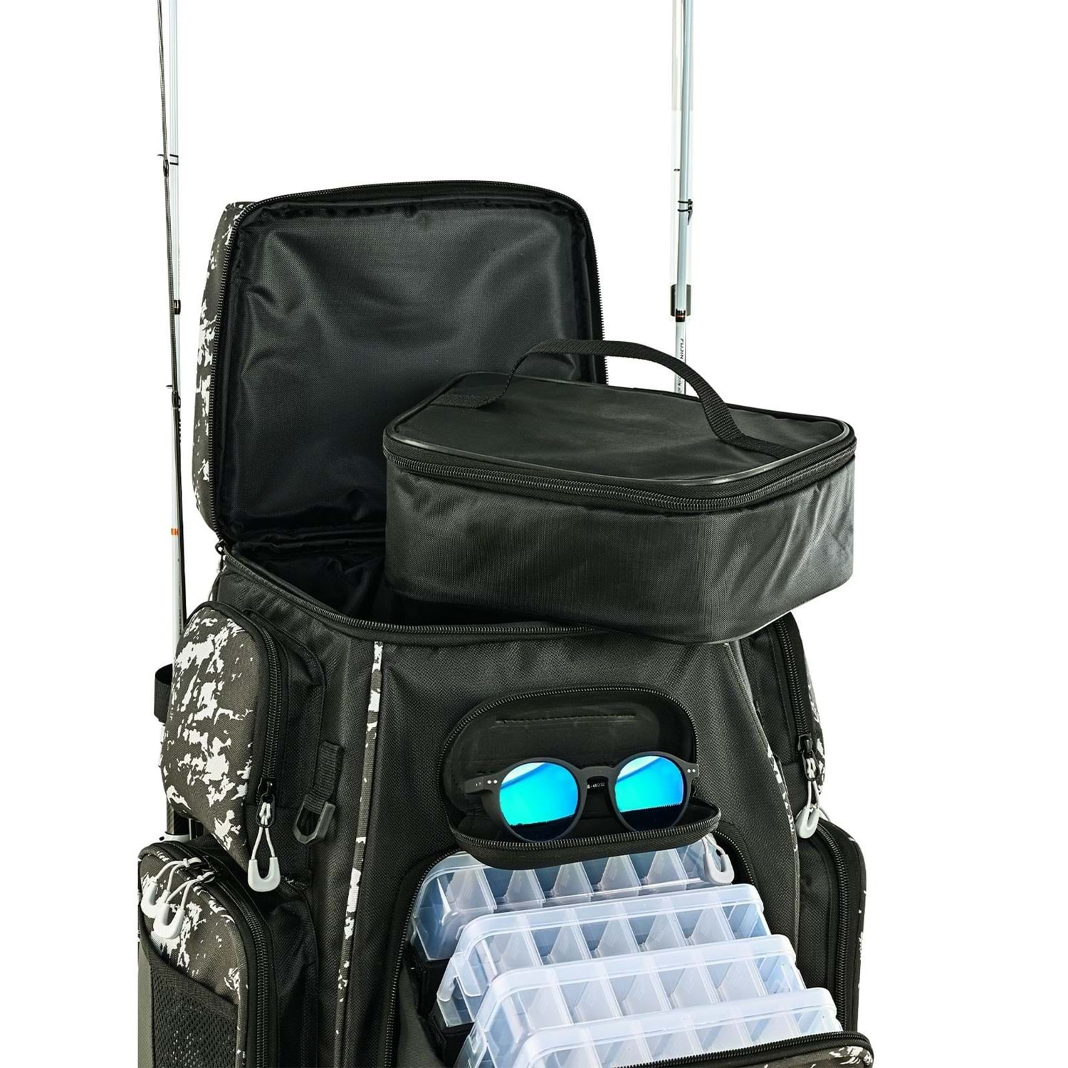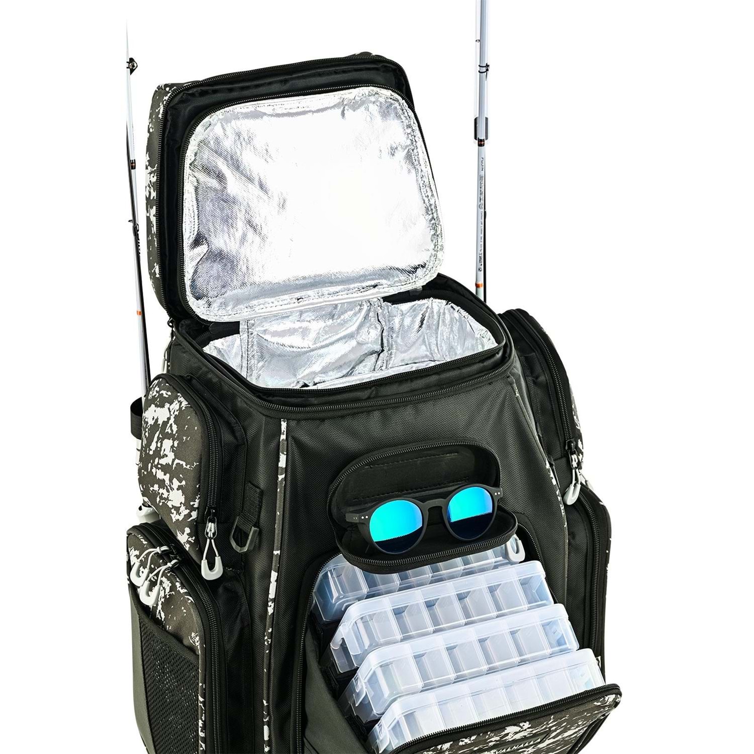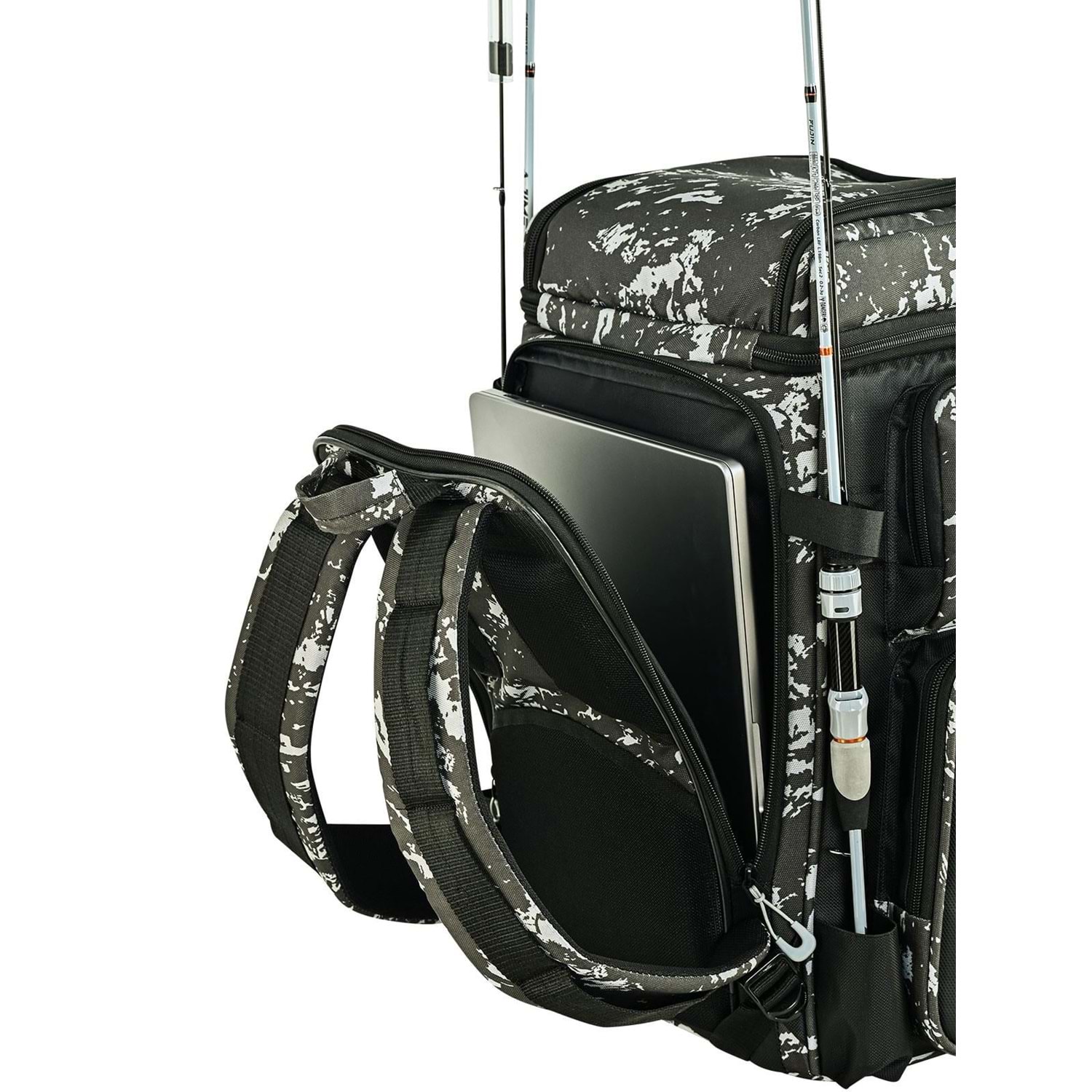 Fujin Valhalla Big Pack, sadece bir çanta değil, mobil bir balık av istasyonu. Üst bölmede çıkartılabilir bir soğutucu çanta bulunmaktadır. Dilerseniz içeceklerinizi burada buz kaseti ile soğuk tutabilirsiniz. 4 adet organizer kutusu, kamış taşıma yuvaları, gözlük bölmesi, arka tarafta laptop bölmesi, aksesuar takma aparatları ve ekstra sağlam taşıma yapısıyla hem sahada hem teknede seni yarı yolda bırakmaz. 2 kamışını aynı anda taşı, elin boşta kalsın. Bu sırt çantası, organize balıkçılığın tanımıdır.