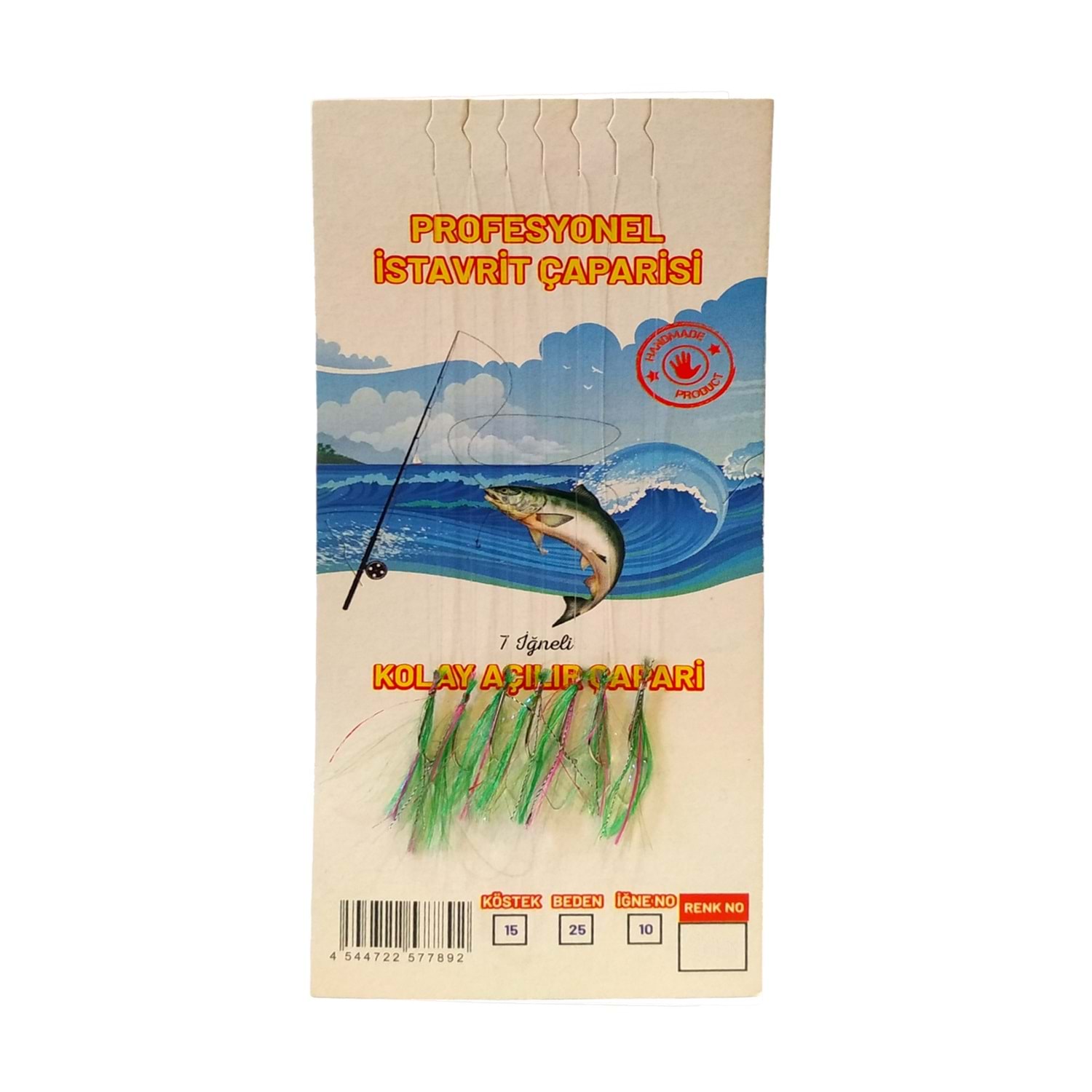 Profesyonel İstavrit Çaparisi 7 İğneli Yeşil Simli Kırmızı Kırçıllı