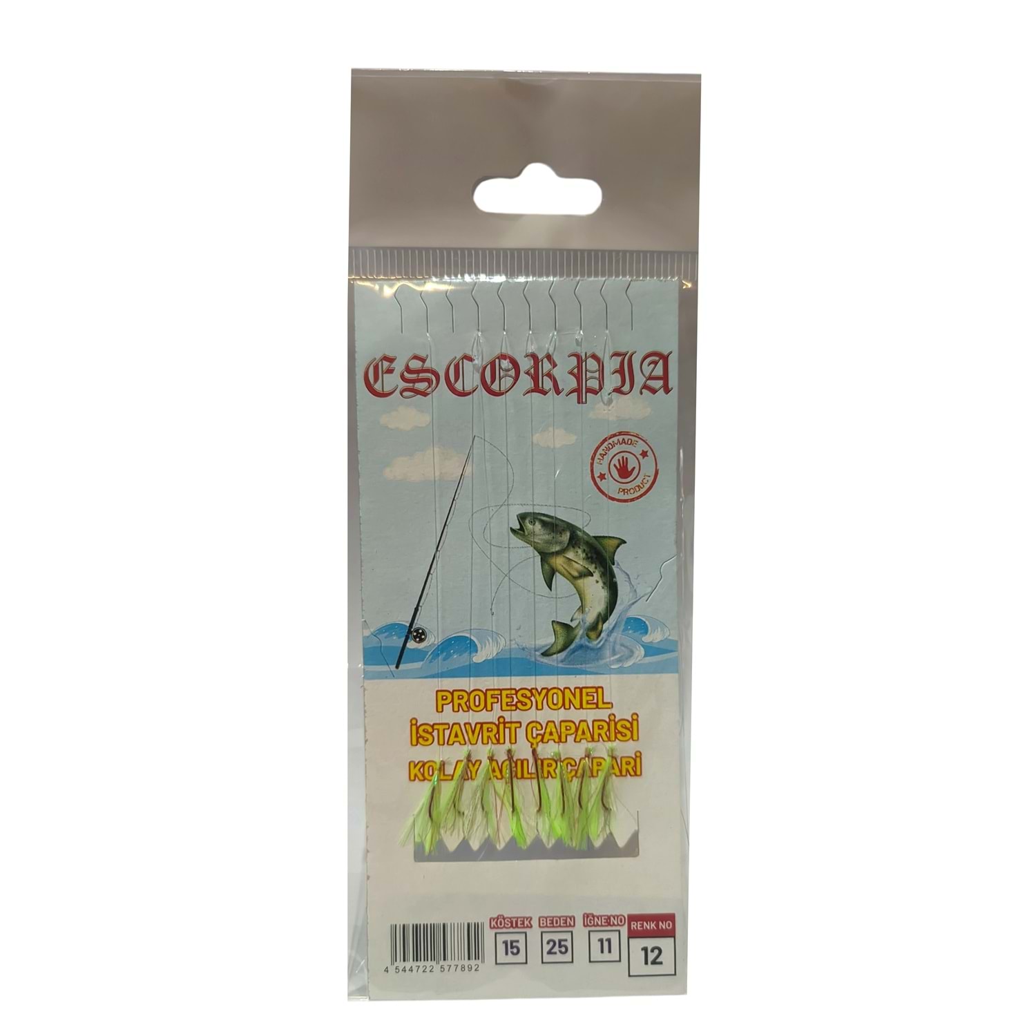 Profesyonel İstavrit Çaparisi 8 Kırmızı İğneli A.Yeşil Simli Kırmızı Kırçıllı