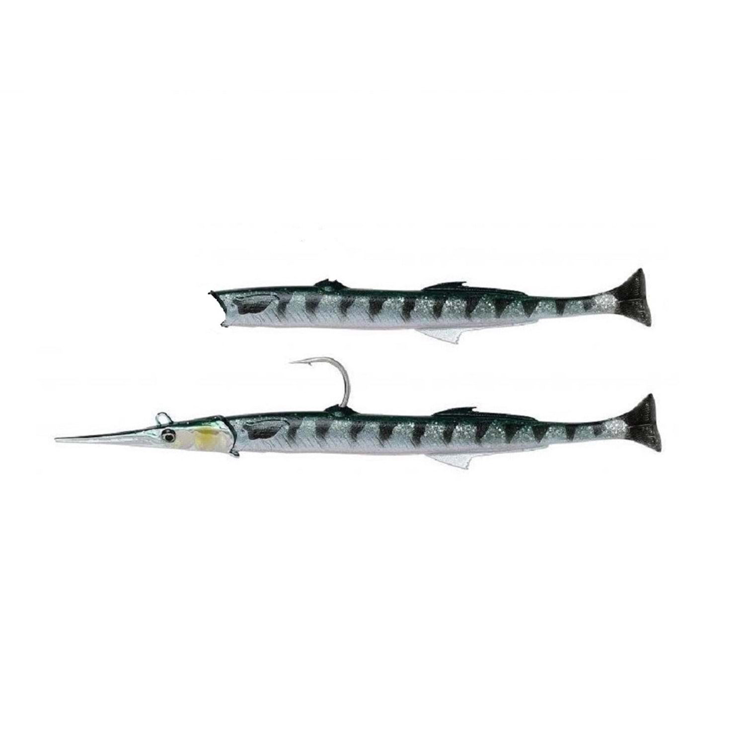 Gerçek bir zargananın 3D taramasına dayanarak, mükemmel bir zargana sahtesi oluşturduk! Sadece bir zargana gibi görünmüyor, bir zargana gibi davranıyor! Zargana sahtesini gerçek bir zargana gibi çok gizli bir titreşim ve kuyruk aksiyonu veren eşsiz kuyruk ile donattık! Perma çeliğe sertleştirilmiş karbon çeliği iğnesi uyguladık. Boya ve jig başlığına bağlı olarak, kıyıdan seyirtme, tekneden sırtı, dikey balıkçılık veya trolling için kullanılabilir! Sahte çekişte ve düşüşte, hem yüksek hem de düşük hızda yüzecektir. PVC gövde oldukça dayanıklıdır ve her bir sahte için yedek bir kuyruk verilir.