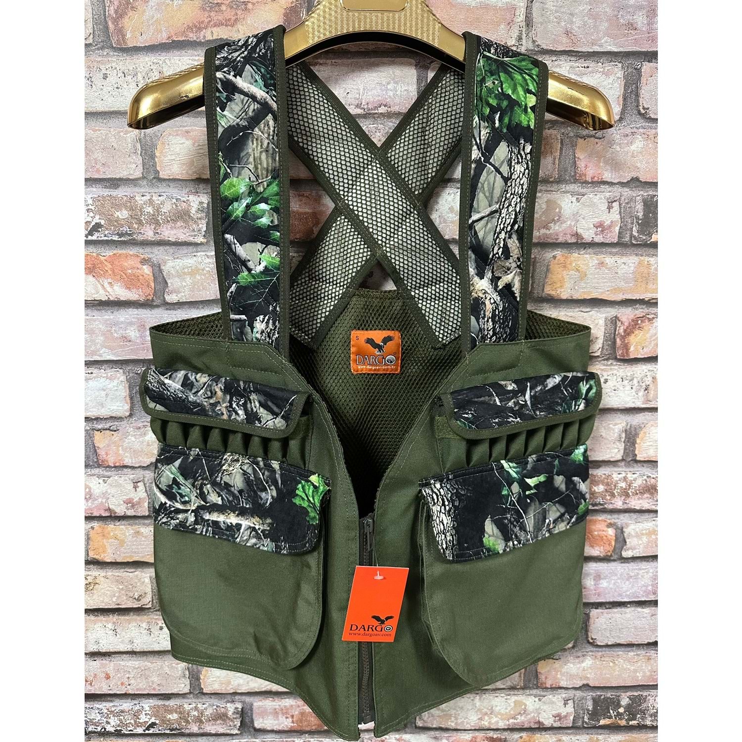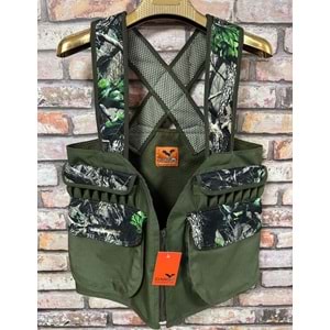 Dargo Askılı Haki Yaprak Desenli Kamuflaj Avcı Yeleği